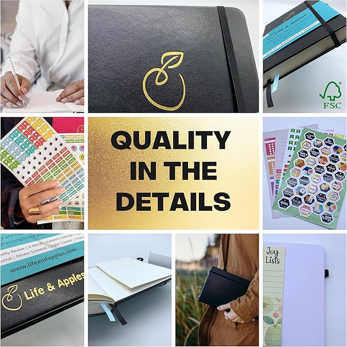 - EXTRAS & BONUSES: Inserts include habit trackers, fitness planner and wellness planner stickers. You also get exclusive access to Life and Apples Healthy Eating & Meal Planning e-package with your purchase. The package includes ebooks and downloadable planner printables such as a weekly meal planner, healthy recipes, weekly fitness planner and the complete guide to meal prep.