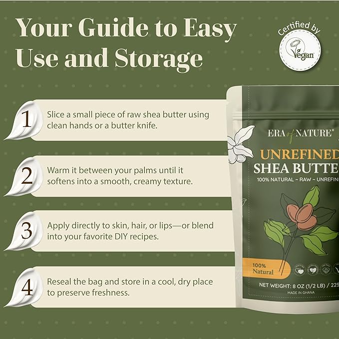- PREMIUM PACKAGING FOR FRESHNESS: Packaged in high-quality Kraft Foil bags, our raw butter stays fresh and potent. This thoughtful packaging ensures you're getting the highest quality trusted by both professionals and DIY skincare lovers.