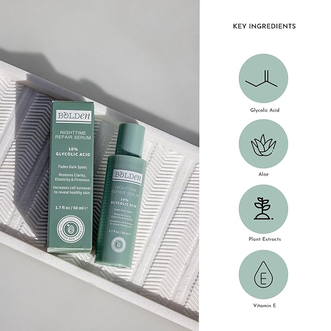 Bolden Nighttime Repair Serum | Facial Serum for Dark Spots and Discoloration | Ideal for Acne-Prone & Melanin-Rich Skin | 1.7 Fl Oz
