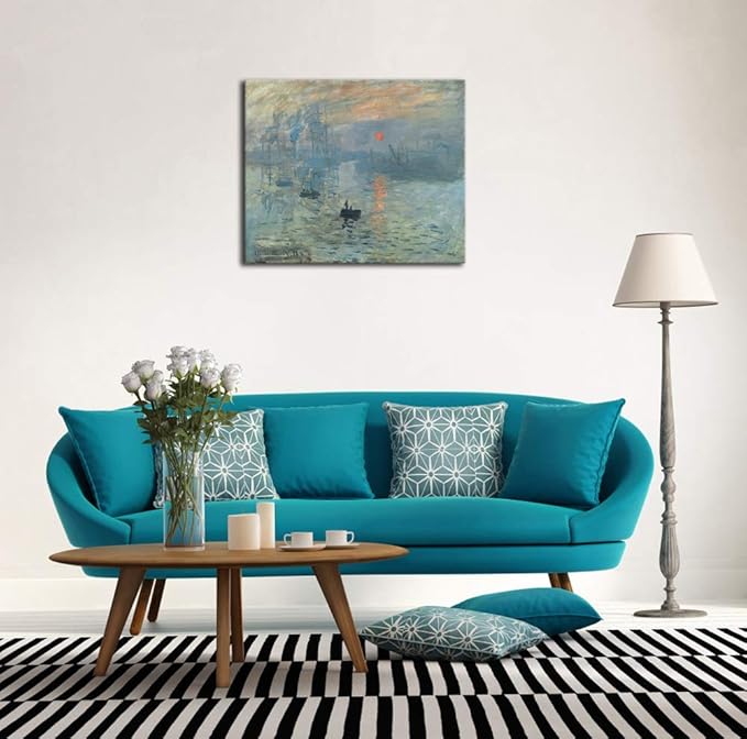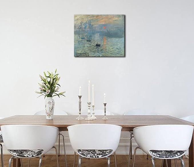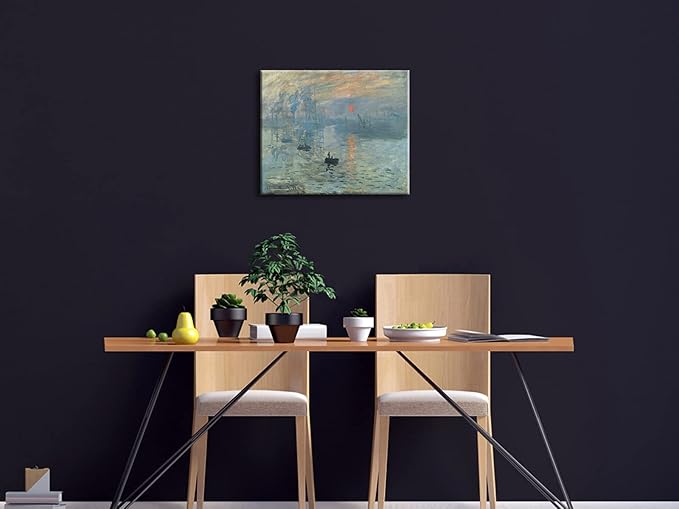 Wieco Art Impression Sunrise Canvas Prints Wall Art of Claude Monet Classic Oil Paintings Reproduction Seascape Ocean Sea Beach Picture for Living Room Home Decor Modern Gallery Wrapped Giclee