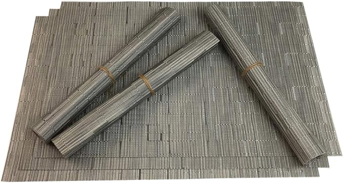 Red-A Placemats Set of 6 for Dining Table Heat-Resistant Washable Place Mats Woven Vinyl Kitchen Table Mats Easy to Clean,Silver Grey