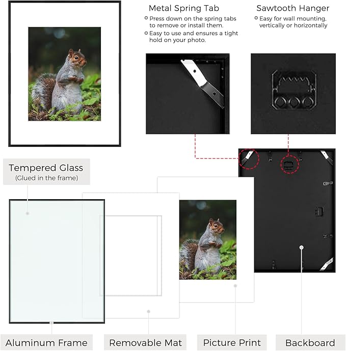 - Easy to Use: Spring Retention Clips& Corner Spring Clips on the backboard are easy for loading photos and hold picture tightly. Sawtooth Hangers are for wall display (Vertically or Horizontally)