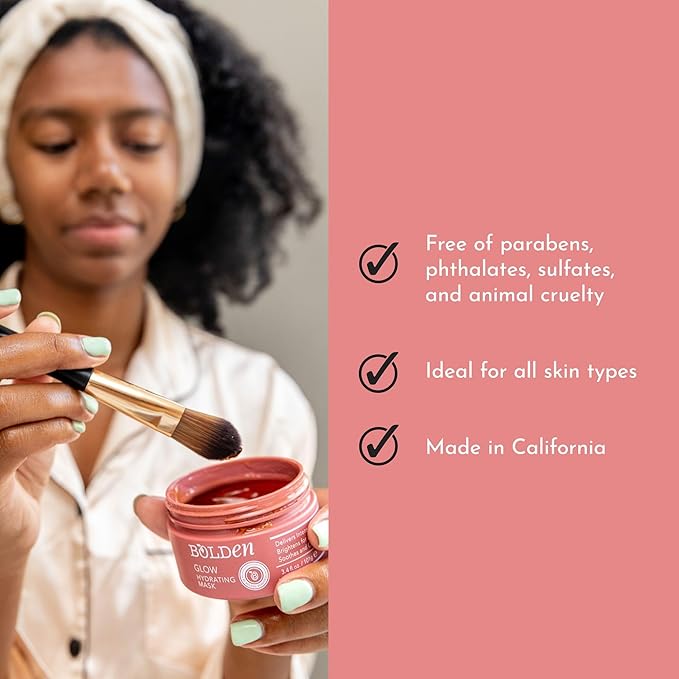 BOLDEN GLOW Hydrating Mask | Deep Moisturizing Facial Mask for Dry Skin | Gently Hydrating Hyaluronic Acid Moisturizer | Non-Comedogenic | 3.4 Fl Oz