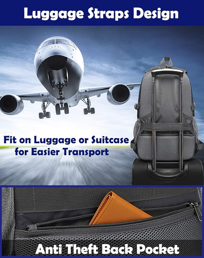 - BACK LUGGAGE SLEEVE & CHEST STRAPS & AIR FLOW SYSTEM : BACK LUGGAGE STRAPS Design allows your backpack fit on luggage or suitcase for easier transport, Adjustable CHEST STRAPS with buckle design will Keep the shoulder straps securely in place, AIR FLOW SYSTEM, Ergonomic S-Curved Shoulder Straps with breathable mesh and back panel with multi layer sponge padding could protect your backbone and ease the bear load, help relieve the stress from your shoulder.