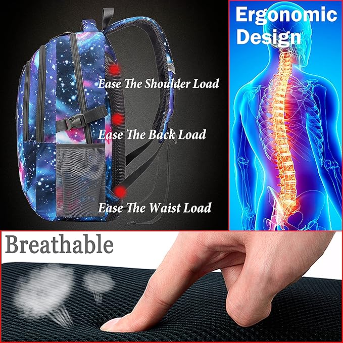 ProEtrade Galaxy Backpack Bookbag for College Sturdy Travel Business Hiking Fit Laptop Up to 15.6 Inch Multi Compartment Gifts for Men Women Night Light Reflective (Galaxy)