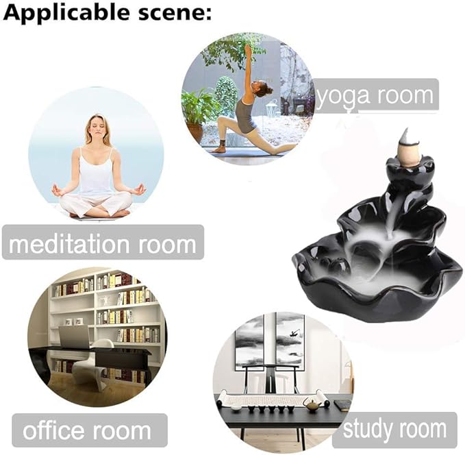 - Health Benefits: Incense cone burner used with Backflow Cones & Sticks, create fresh air, calm mood, alleviate anxiety, etc. incense cone offer aromatherapy that contributes to reduced pain and improved health, meditation and aid-sleeping effect.Forget about troubles, releasing stress is so easy
