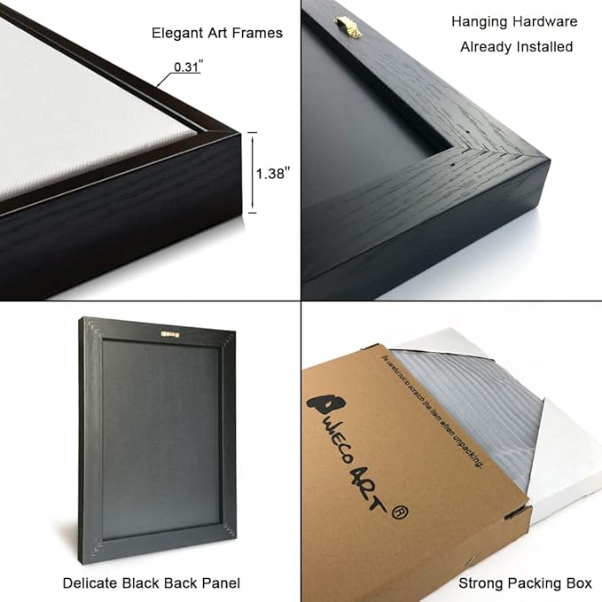 - High quality framed art. Frame is of PS lightweight environment protection material, moisture-proof, no smell (so it is also safe to be placed in the children's room). Black finish frame is designed to beautify many different spaces in your home.