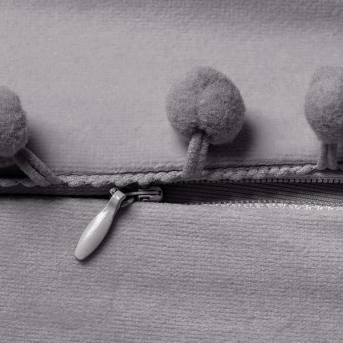 DEZENE Decorative Pillow Cases 24x24 Light-Grey: 2 Pack Cozy Soft Pom-poms Velvet Square Throw Pillow Covers for Farmhouse Home Decor