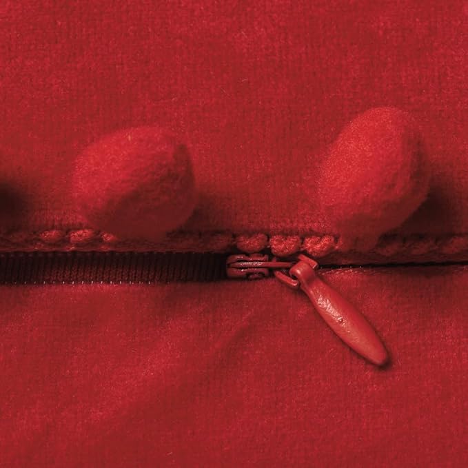 DEZENE Throw Pillow Covers 20x20 Red: 2 Pack Cozy Soft Pom-poms Velvet Square Decorative Pillow Cases for Farmhouse Home Decor