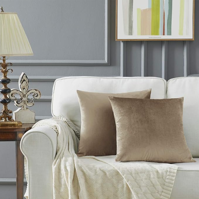 GIGIZAZA Decorative Throw Pillow Covers 18 x 18, Taupe Beige Khaki Soft Pillow Covers Velvet,Set of 4 Decor Square Cushion Covers