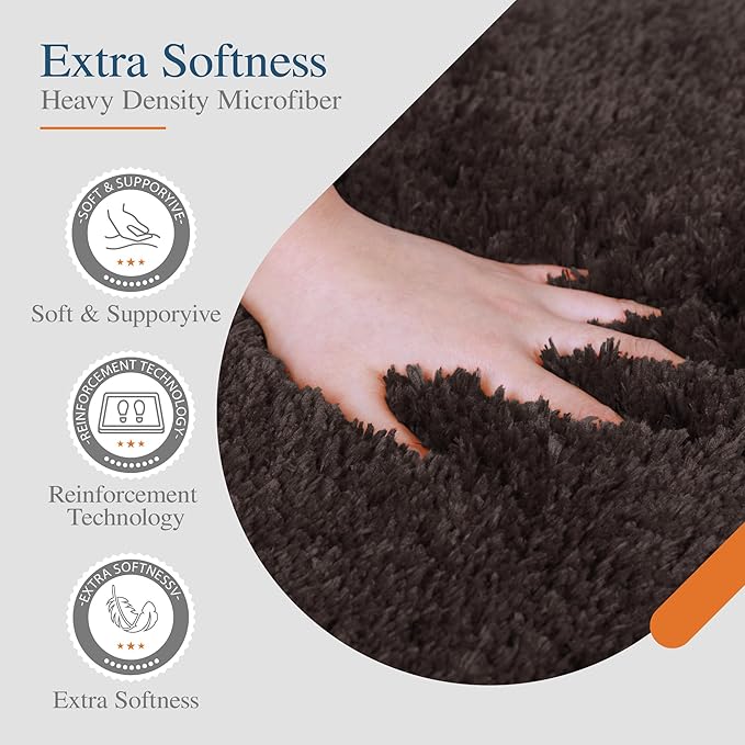 Walensee Bathroom Rug Non Slip Bath Mat (16 x 24, Brown) Water Absorbent Soft Microfiber Shaggy Mat Machine Washable Thick Plush Rugs for Shower
