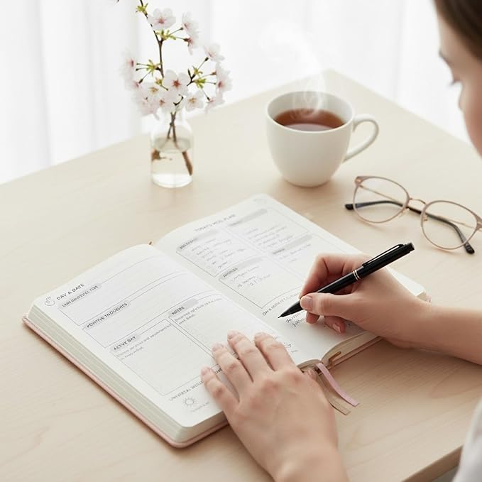 - PREMIUM QUALITY: size 5.5" X 8" guided notebook that easily fits in your bag, thick paper, planner stickers, bonus inserts, bookmarks, pen loop and closure band.