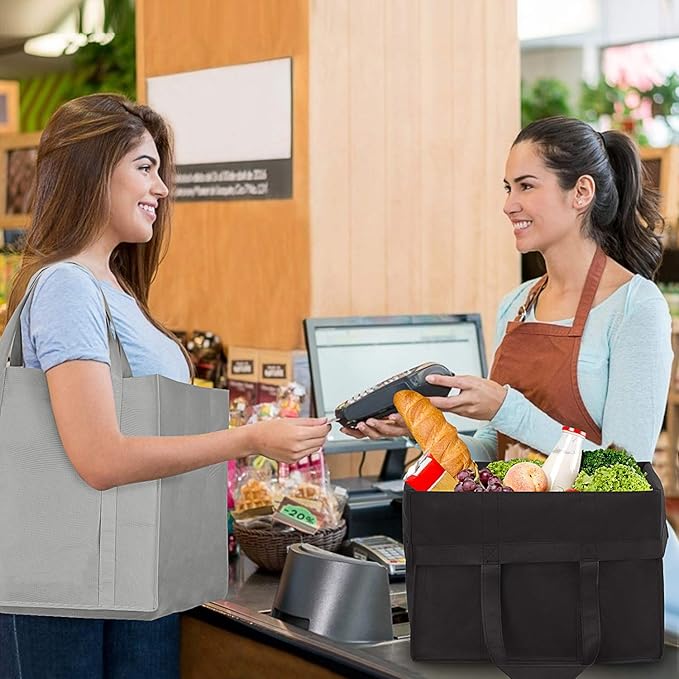 - Rip-stop Fabric: the reusable grocery bag is made of heavy-duty non-woven fabric reinforced with finished stitches; the large grocery shopping bags are strong and can hold up to 50 lbs of items