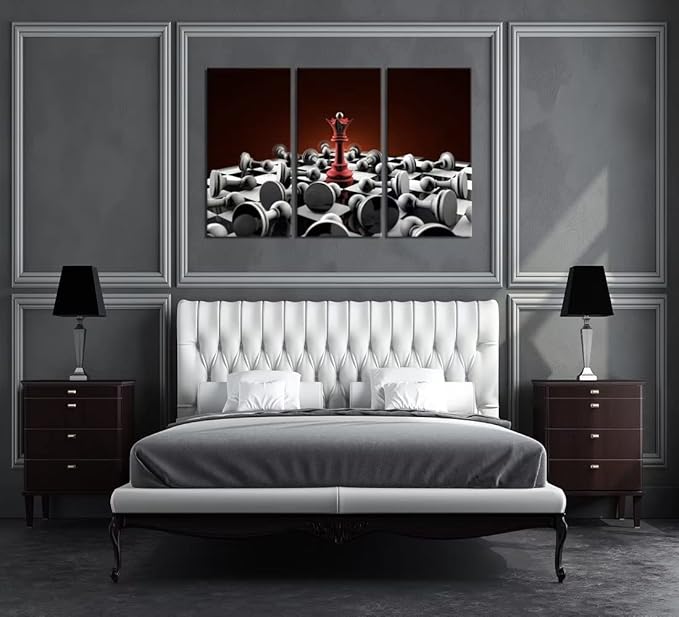 - Easy To Install: The chess pieces wall pictures Installation takes just three steps, opening the courier package, installing seamless studs and hanging artwork. A simple three-step process will make your room perfect. Each panel internal and external packaging is strictly required to ensure a variety of transportation protection.