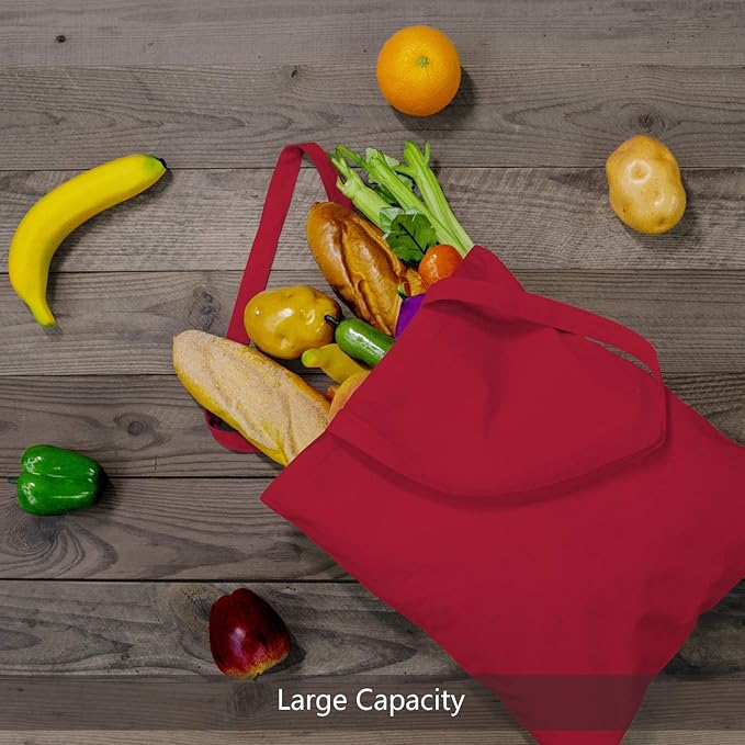 TOPDesign 24-Pack Economical 16"x15" Red Cotton Tote Bag, Lightweight Medium Reusable Grocery Shopping Cloth Bags, Suitable for DIY, Advertising, Promotion, Gift, Activity