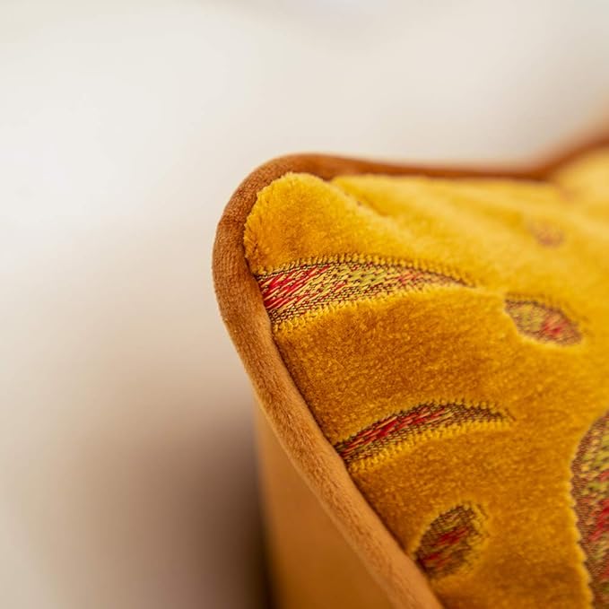 Alerfa 20 x 20 Inch Square Leaf Pillow Embroidery Cut Velvet Cushion Case Luxury Modern Lumbar Throw Pillow Cover Decorative Pillow for Couch Sofa Living Room Bedroom Car, Orange