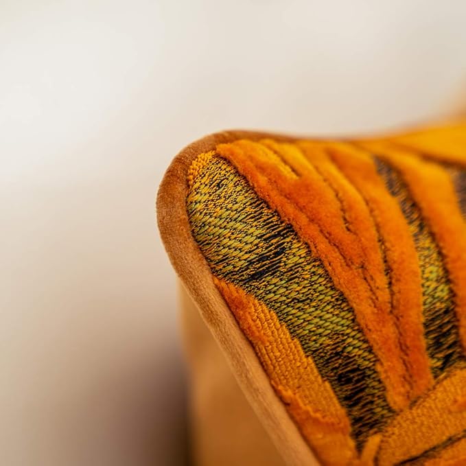 Alerfa 20 x 20 Inch Orange Square Maple Leaf Pillow Embroidery Cut Velvet Cushion Case Luxury Modern Lumbar Throw Pillow Cover Decorative Pillow for Couch Sofa Living Room Bedroom Car