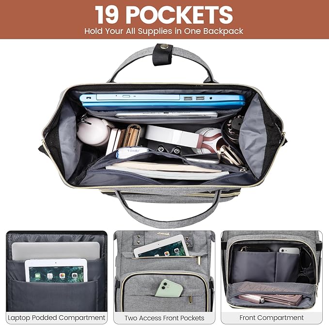 - 🎒【Wide Open Teacher Nurse Backpack Work Bags】: Reinforced edges and steel frame of the main compartment keep the perfect shape of the bag,the top opens,you can see your things easily and access quickly,most easily organized.Teacher backpack with laptop compartment,nurses bags and totes for work,work backpack for women professional.