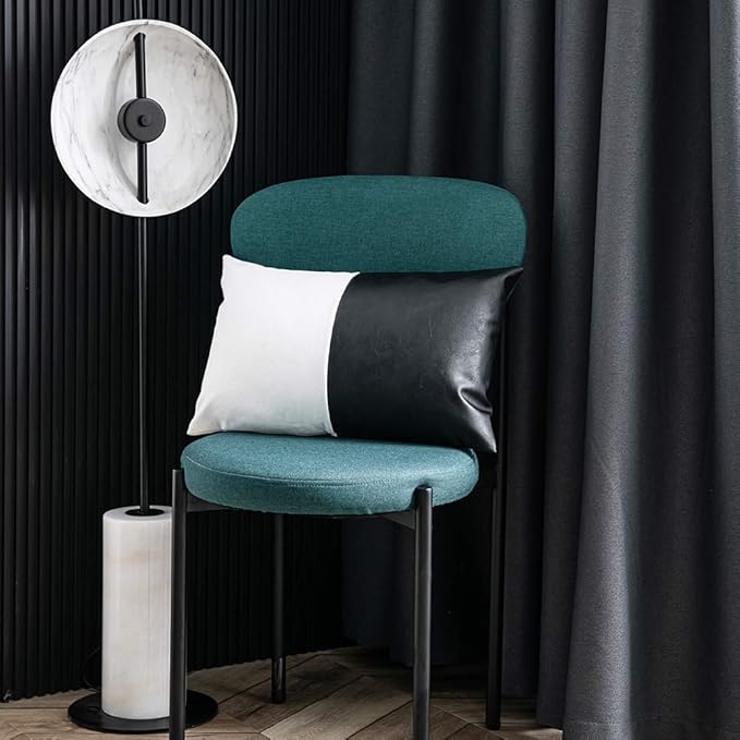 DEZENE Faux Leather Cotton Throw Pillow Covers for Couch Bed Sofa, Set of 2 12 x 20 inch Modern Square Decorative Bedroom Living Room Cushion Cases, Black and White