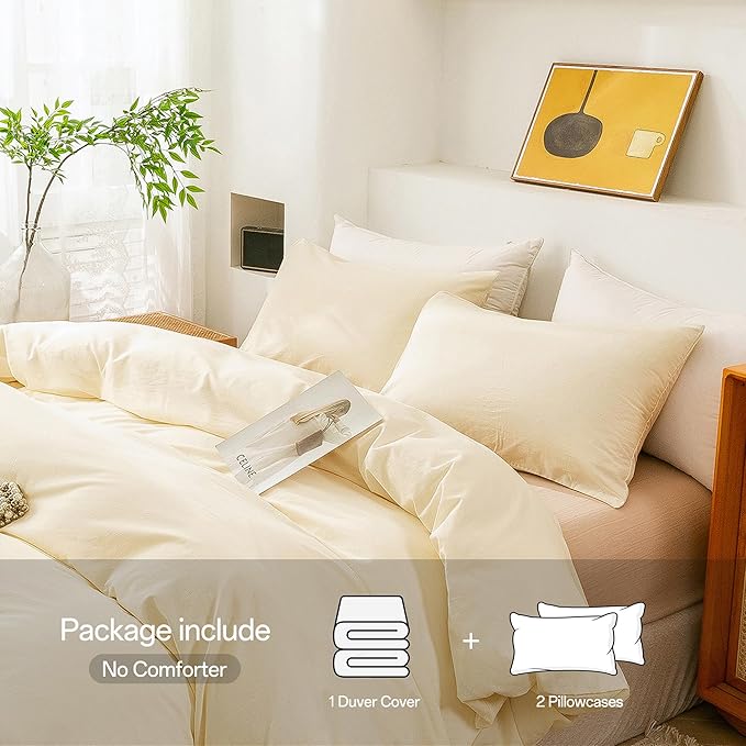 - High-Quality Material: Crafted from 100% washed cotton, this duvet cover set offers a relaxed, slightly wrinkled texture that mimics the look and feel of linen. Perfect for maintaining a cool, breathable, and comfortable sleeping environment.