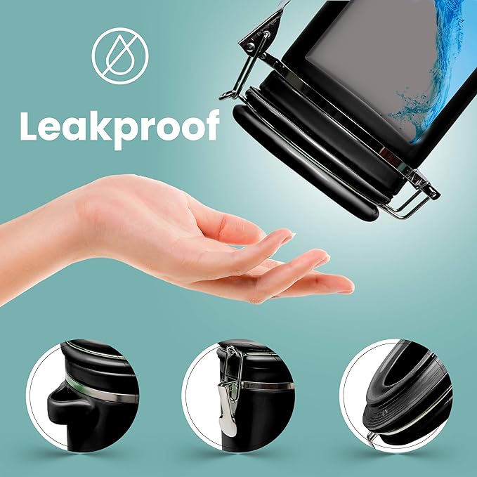- AIRTIGHT SEAL FOR UNBEATABLE FRESHNESS: Featuring an airtight lid with silicone gaskets and a metal latch for perfect seal, this handy canister set will preserve the flavor of your supplies and keep them fresh and delicious. Perfect for any type of coffee, tea, sugar, flour, salt, candy, spices and so much more. Plus, they are 100% leakproof to prevent any messy spills