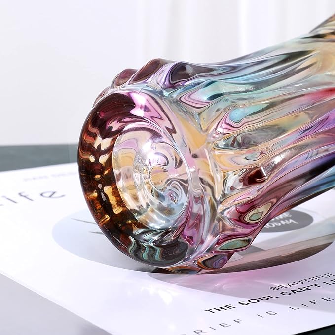 Glass Colorful Vase,Glass Flower Vase Decor for Home Dining Table Living Room,Office Wedding Holiday Party,Handmade Pattern