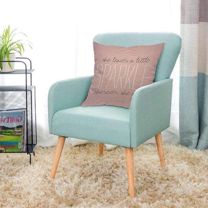 AOYEGO Pink Sparkle Monogram Throw Pillow Cover She Leaves A Little Sparkle Wherever She Goes Pink Background Shiny Words Pillow Case 18x18 Inch Decorative Men Women Room Cushion Cover