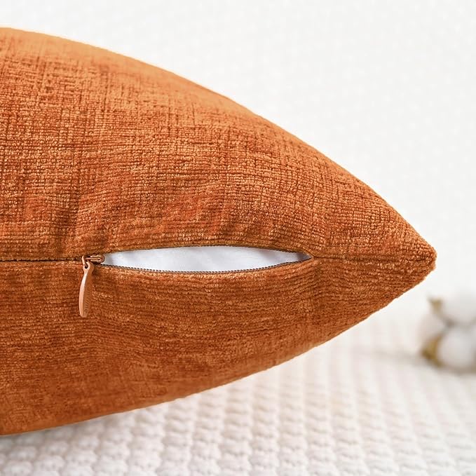 CaliTime Fall Throw Pillow Covers Decorative 18 X 18 Inches Pack of 2 Cozy Chenille Cushion Cases for Couch Sofa Bed Living Room Home Burnt Orange
