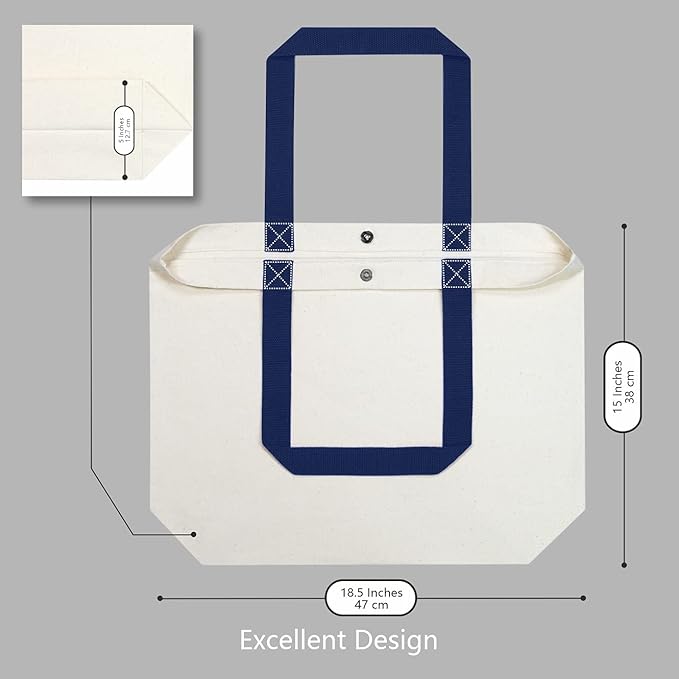 - LARGE CAPACITY & DURABILITY: 18.5"L x 4.72"W x 15"H, made of 8oz canvas, with heavy weight stitching throughout, including cross-stitching at the handles for maximum strength allowing the bag to hold up extra bearing capacity. With two reinforced blue webbing handles sized 1.18"W x 23.62"L, convenient to carry in hand or wear on your shoulder, sturdy enough for all kinds of daily use.