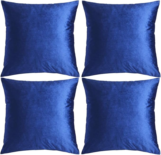 GIGIZAZA Decorative Throw Pillow Covers 16 x 16, Navy Blue Soft Pillow Covers Velvet,Set of 4 Decor Square Cushion Covers