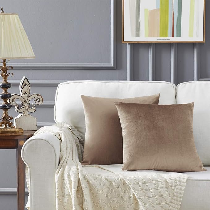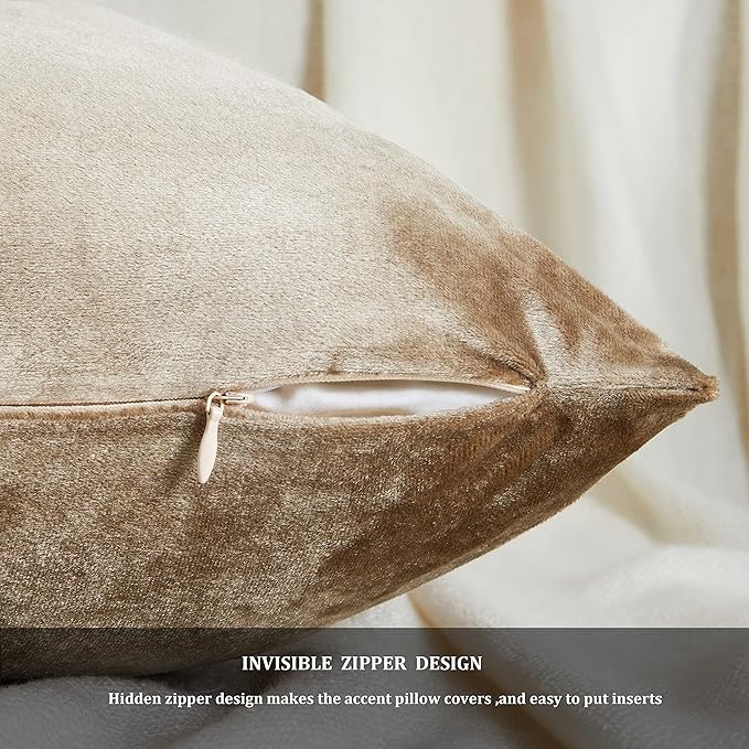 - SOFT & COMFORTABLE MATERIAL :High quality classic soft velvet fabric , Comforter and Durability .4 pack decorative sofa cushion covers .Natural Beige color is luxury and clean.Skin-Friendly .