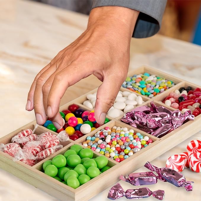 - BEAUTIFUL HOME DECOR: The beautiful natural wood sectioned trays serve as a magnificent piece of home décor. Whether it’s filled with goodies or just laying around. This sectioned wooden tray will add a touch of elegance to your coffee table, kitchen counter, breakfront or any surface around your home.