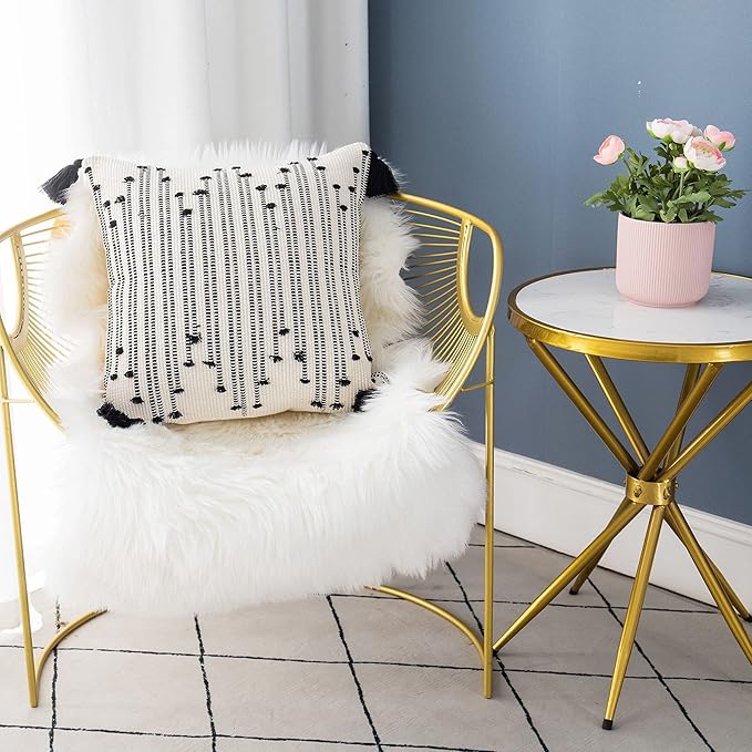 LIGICKY Boho Throw Pillow Covers with Tassel Decorative Square Woven Pillowcase for Couch Sofa Bed, Black and White 18x18 Inch
