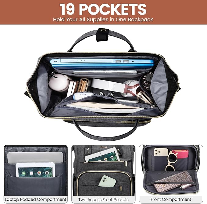 - 🎒【Wide Open Teacher Nurse Backpack Work Bags】: Reinforced edges and steel frame of the main compartment keep the perfect shape of the bag,the top opens,you can see your things easily and access quickly,most easily organized.Teacher backpack with laptop compartment,nurses bags and totes for work,work backpack for women professional.