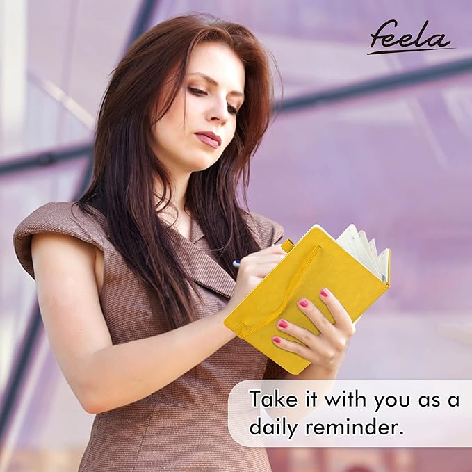 12 Pack Notebooks Journals Bulk with 12 Black Pens, Feela A5 Hardcover Notebook Classic Ruled Journal Set with Pen Holder for School Business Work Travel Writing, 120 GSM, 5.1”x8.3”, Yellow
