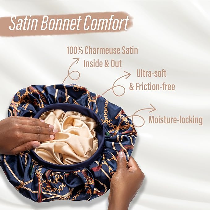 - Protects Hair from Breakage & Frizz: Smooth satin in our hair bonnet reduces friction and locks in moisture, preventing damage. Ideal satin bonnet for sleeping, silk bonnet for curly hair, and bonnets for women sleeping with curls, braids, or locs.