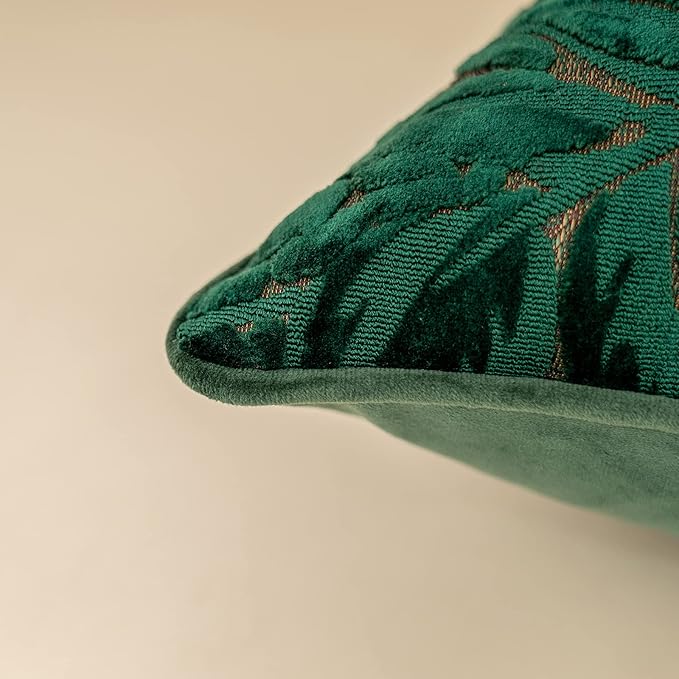Alerfa 12 x 20 Inch Green Teal Rectangle Maple Leaf Pillow Embroidery Cut Velvet Cushion Case Luxury Modern Lumbar Throw Pillow Cover Decorative Pillow for Couch Sofa Living Room Bedroom Car