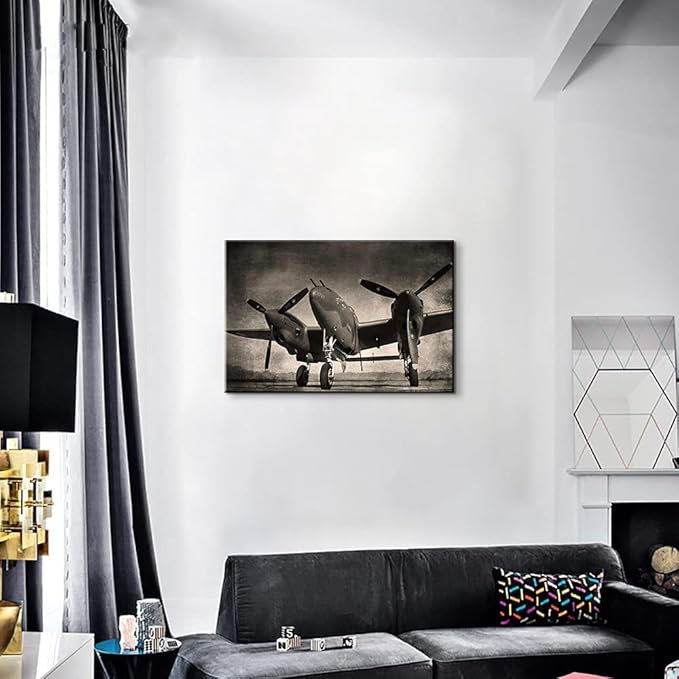 Mistyefly Aviation Decor Lockheed P-38 Lightning Airplane Propeller Wall Decor Military Poster Black and White Aviation Wall Art Air Force Poster Plane Wall Art for Boys Room Decor (12''Hx18''W)