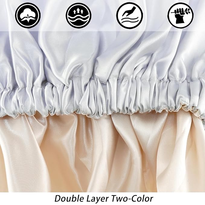 - 【Double Layer Two-Color】It is suitable for activities like washing the face, applying makeup, taking a shower, and doing household chores. The double-layer design not only enhances the protective features of the bonnet but also elevates its overall aesthetic appeal. The combination of various colors adds a touch of luxury, making this bonnet a stylish and practical accessory for enjoying a comfortable night's sleep.