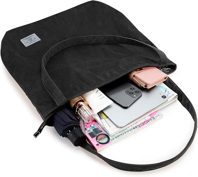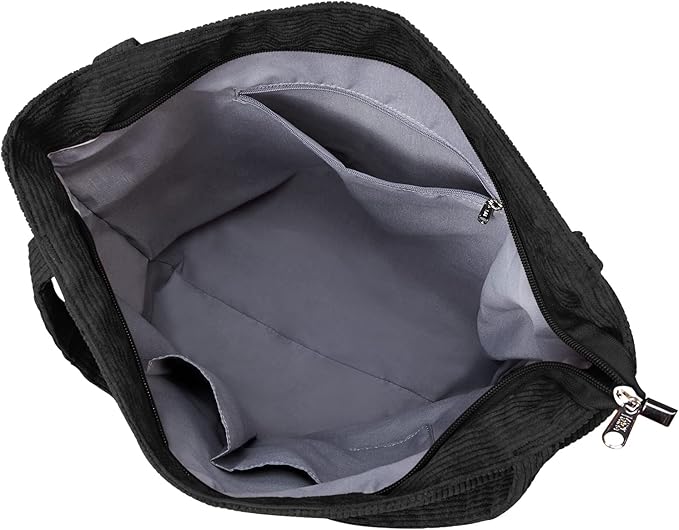 - LARGE CAPACITY: Corduroy Handbag is big enough for all of your daily necessities. You can easily carry your 15.4inch laptop, kindle, ipad, cellphone, binder, book, magazine, passport, keys, wallet/purse, pencil, charger, card, A4 papers, water bottle, perfume, makeup and sunglasses insideand so on.