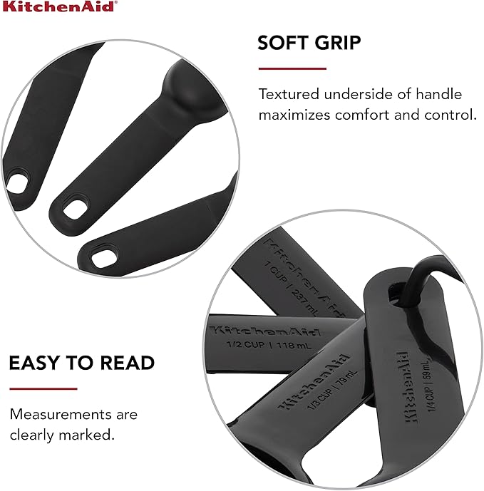 KitchenAid Universal Easy To Read Measuring Cup and Spoon Set with Soft Grip Handle for Maximum Control, Hang Hole and Nesting For Easy Storage, Dishwasher Safe, 9 Piece, Black