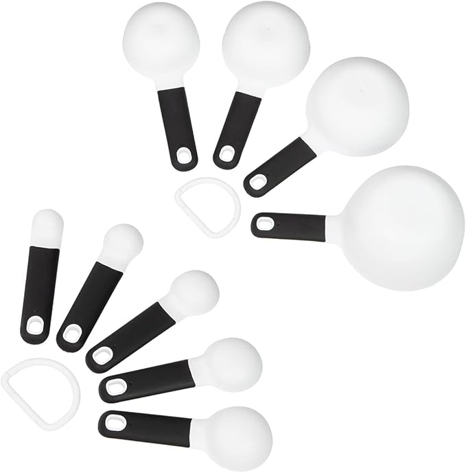 KitchenAid Universal Easy To Read Measuring Cup and Spoon Set with Soft Grip Handle for Maximum Control, Hang Hole and Nesting For Easy Storage, Dishwasher Safe, 9 Piece, White