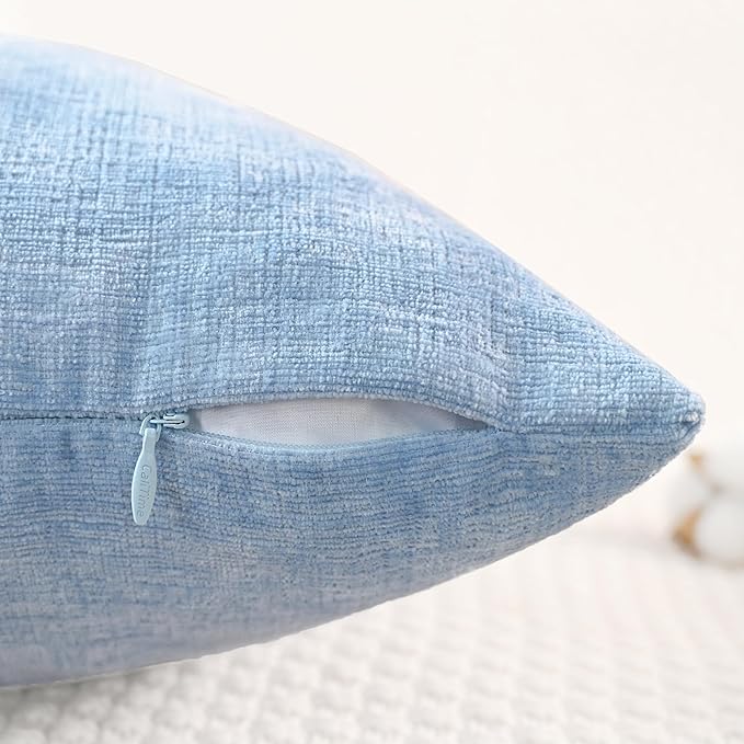 CaliTime Throw Pillow Covers Decorative 24 X 24 Inches Pack of 2 Cozy Chenille Cushion Cases for Couch Sofa Bed Living Room Home Baby Blue