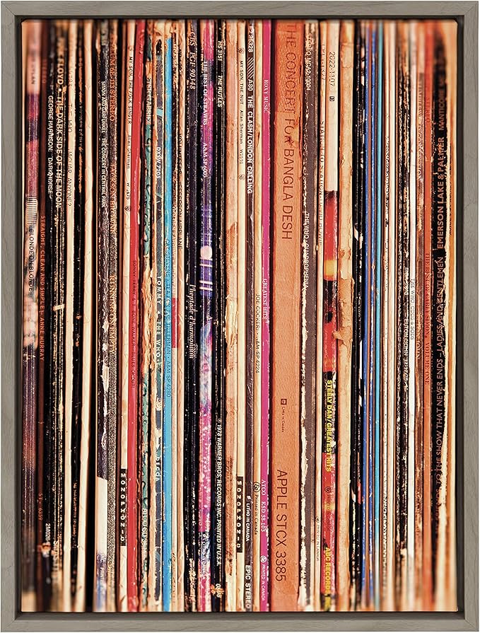 Kate and Laurel Sylvie 33RPM Framed Canvas Wall Art by Robert Cadloff of Bomobob; 18x24 Gray; Decorative Music Art for Wall