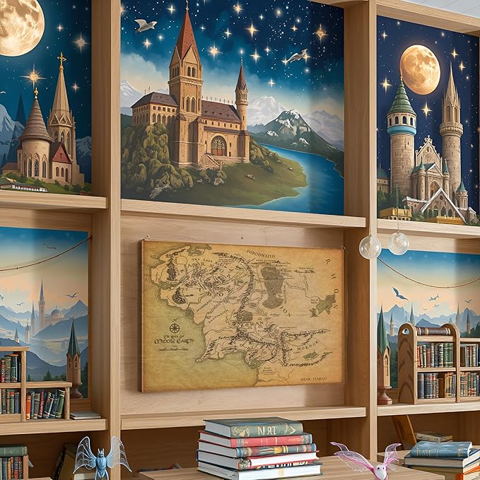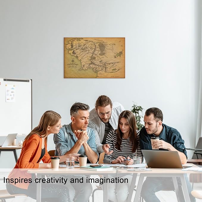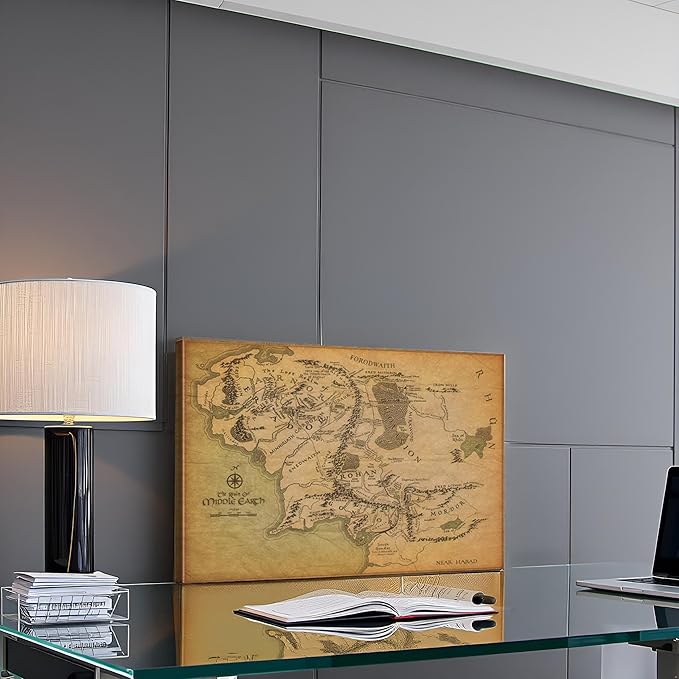 Middle Earth Map Wall Art Canvas Print - Fantasy Map of Middle Earth - 16''H x 24''W with Inner Wooden Frame - Lightweight & Easy to Hang - Perfect for Bedroom, Game Room Decor