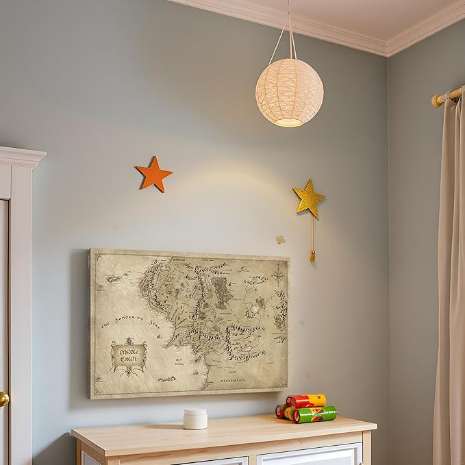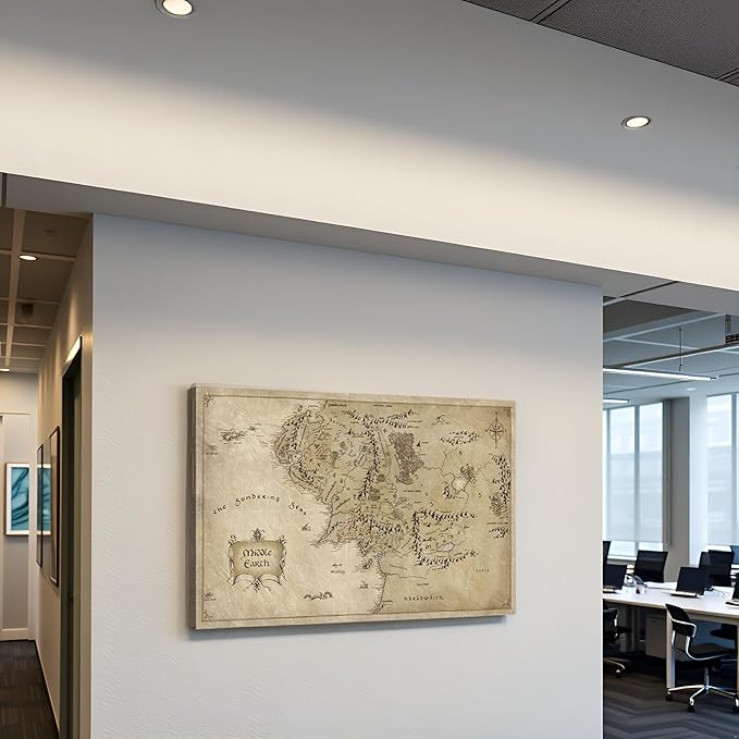 Middle Earth Map Wall Art Canvas Print - Fantasy Map of Middle Earth - 28''H x 40''W with Inner Wooden Frame - Lightweight & Easy to Hang - Perfect for Bedroom, Game Room Decor