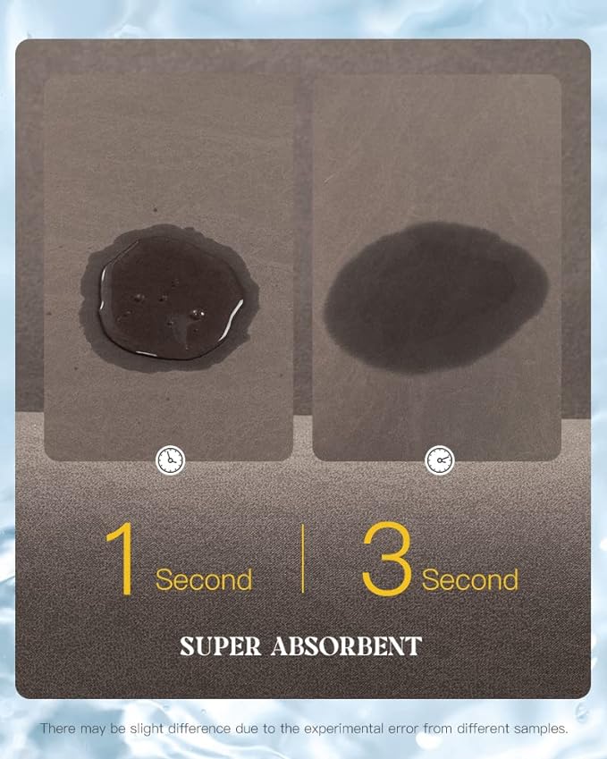 - ABSORBENT :This is a soft version of the diatomaceous earth bath mat. The bathroom rug can suck up dripping water when you come out from bathtub or shower.Faux suede surface dry quickly.Always keep your bathroom clean and tidy