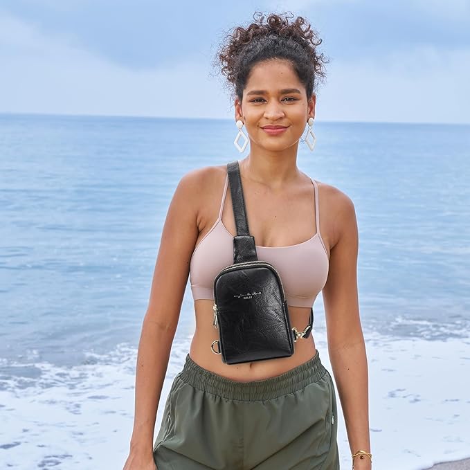 - 【1L Capacity for Essenticals】Chest bag for women has two zip pockets, inside has CARD SLOTS design. Meaning you can store credit cards,keys, cash and other small items in the front pocket. As a travel purse, it has multiple passport holders.What's more, this cute fanny packs for women allows you can put the 6.9 inch cell phone in a big pocket to prevent it from dropping and easy to answer your phone when outdoor activity.