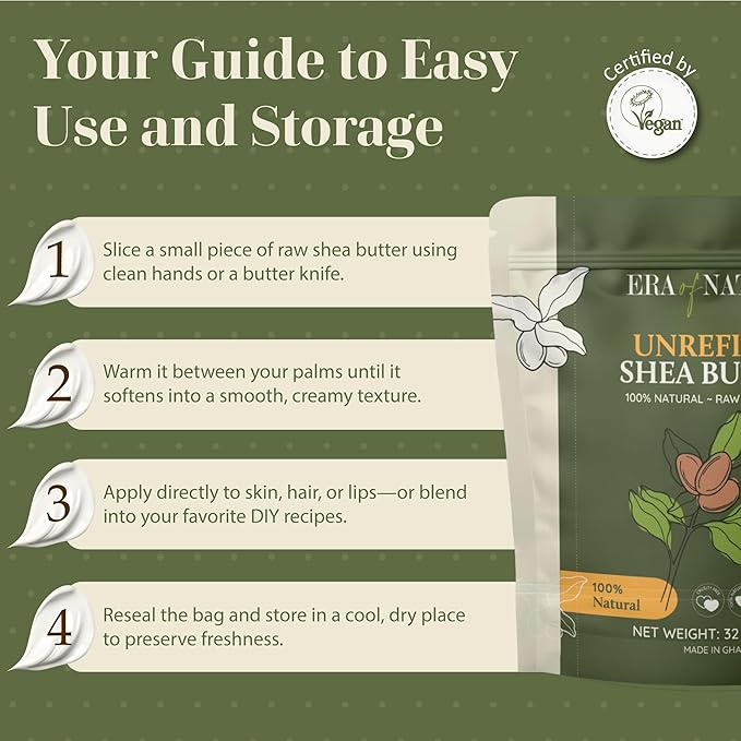 - PREMIUM PACKAGING FOR FRESHNESS: Packaged in high-quality Kraft Foil bags, our raw butter stays fresh and potent. This thoughtful packaging ensures you're getting the highest quality trusted by both professionals and DIY skincare lovers.