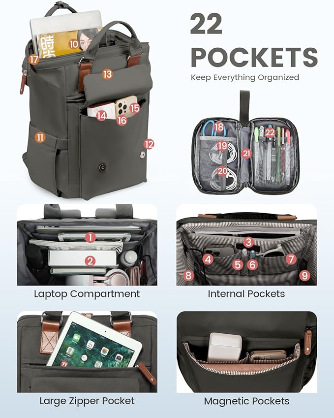 LOVEVOOK Laptop Backpack for Women Work Travel Commuter Backpack Business Computer Bag Doctor Nurse Bags College Backpack Purse, 15.6 Inch, Dark Grey-brown